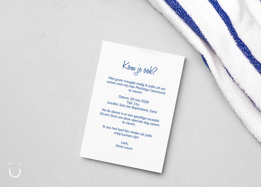 Communie uitnodiging "Beach party"