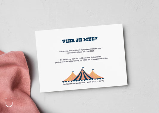 Communie uitnodiging "Vintage circus"