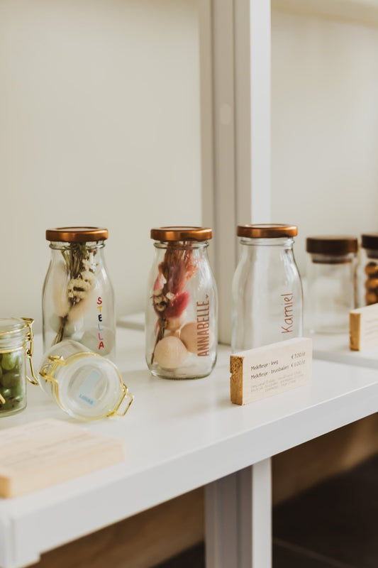 Duurzaamheid vinden we belangrijk. Daarom bieden we herbruikbare materialen zoals stijlvolle glazen potjes, stoffen zakjes en stevige kartonnen doosjes aan. Zo geef je jouw doopsuiker een authentieke, milieuvriendelijke uitstraling.