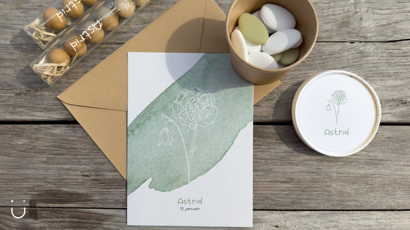 Hier vind je alles van geboortekaartjes tot doopsuiker en herinneringsdozen in één stijlvol geheel. Elke maand lanceren we nieuwe designs, terwijl sommige collecties verdwijnen om onze ontwerpen fris en uniek te houden.
